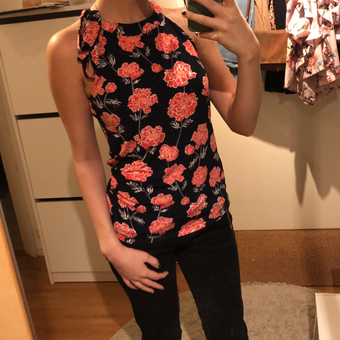 Blommig svart och röd blus