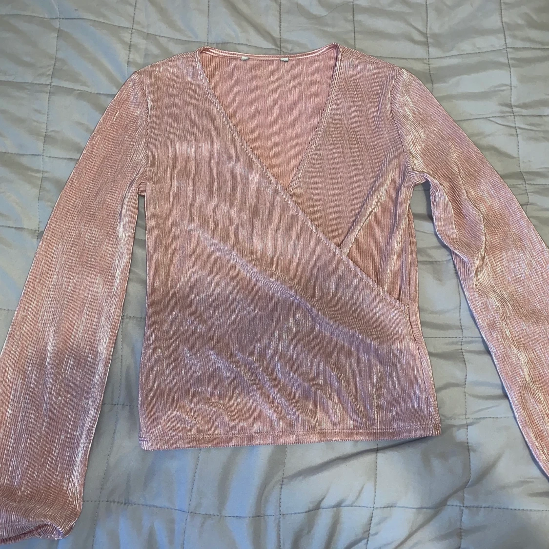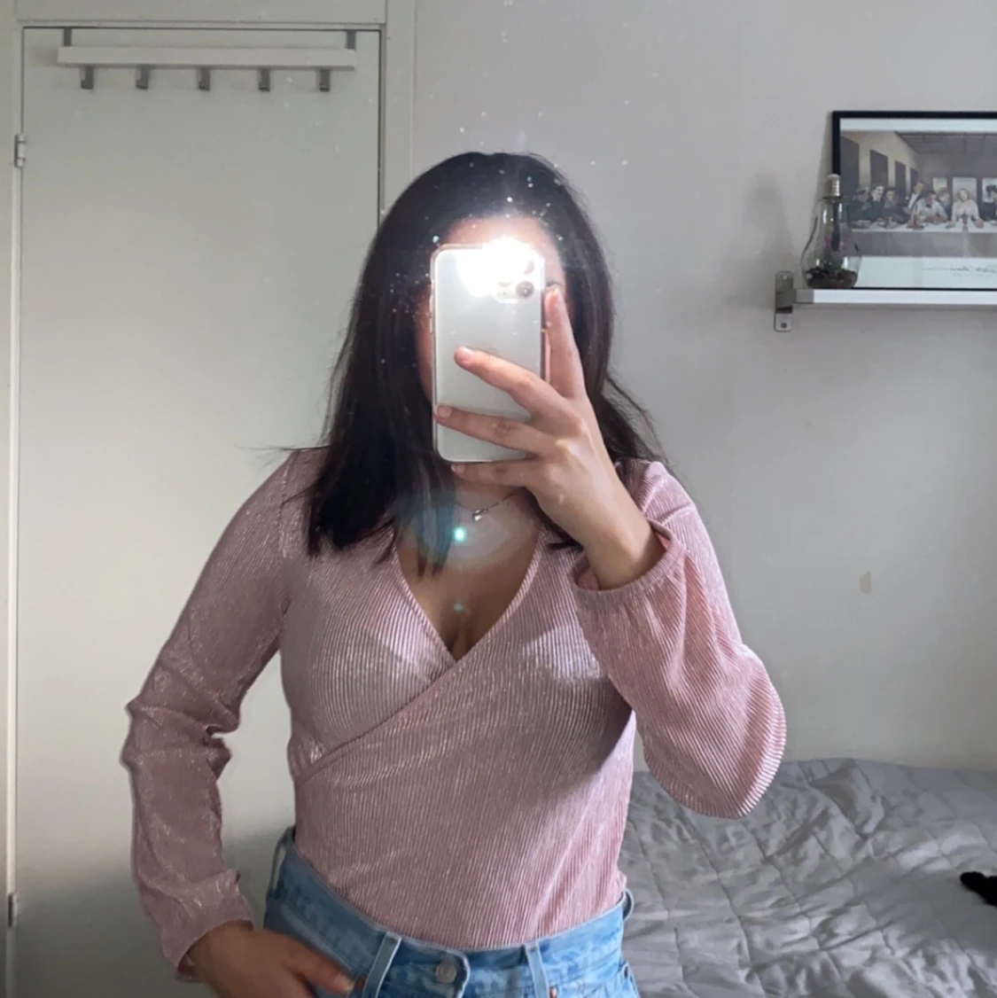 En snygg skimrig blus i strl S som knappt använts. Den är i super bra skick och sitter så fint på. Frakt tillkommer och fler bilder kan jag skicka privat 💕💕