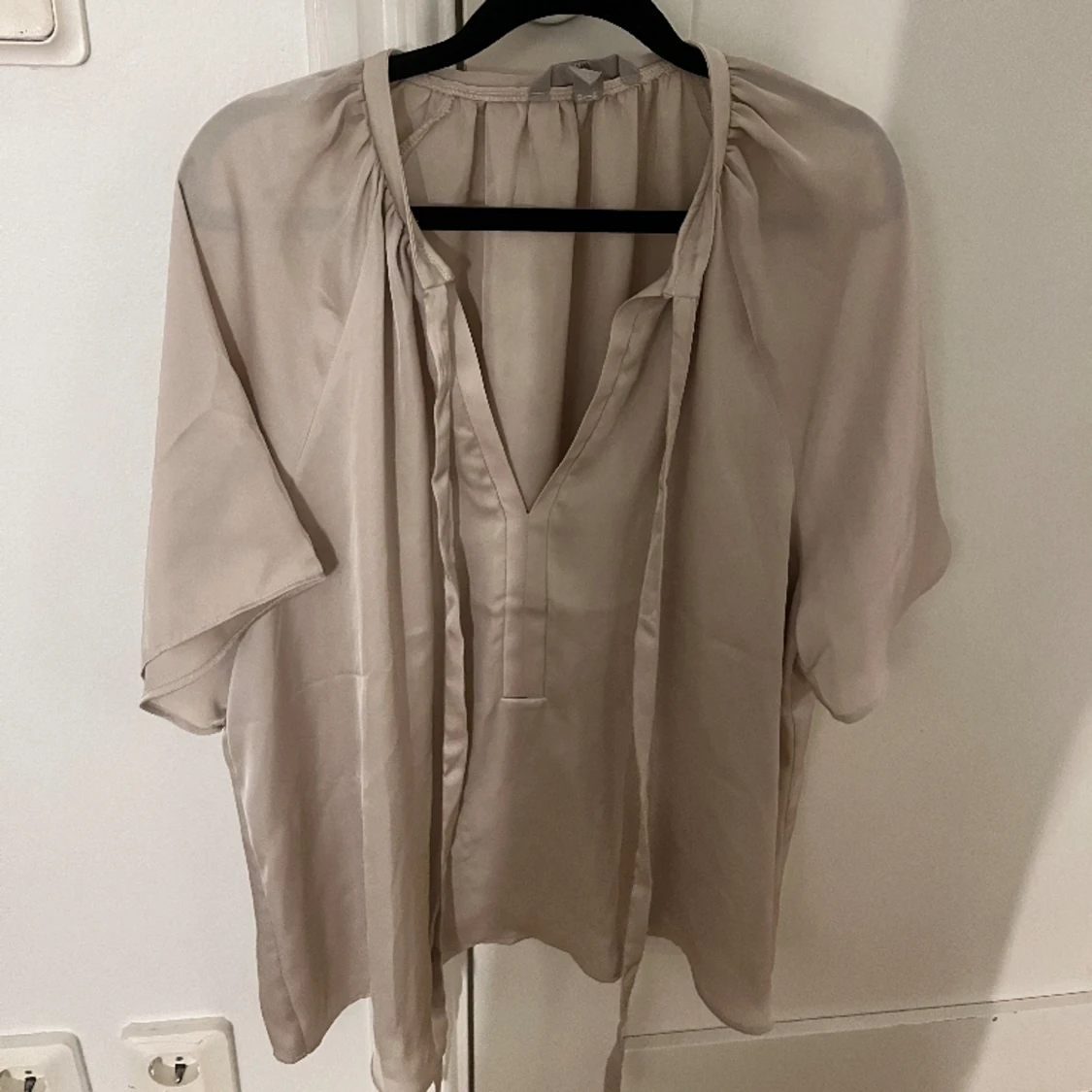 Jätte fin beige blus från hm i storlek s, silkes material och trådar man kan knyta.