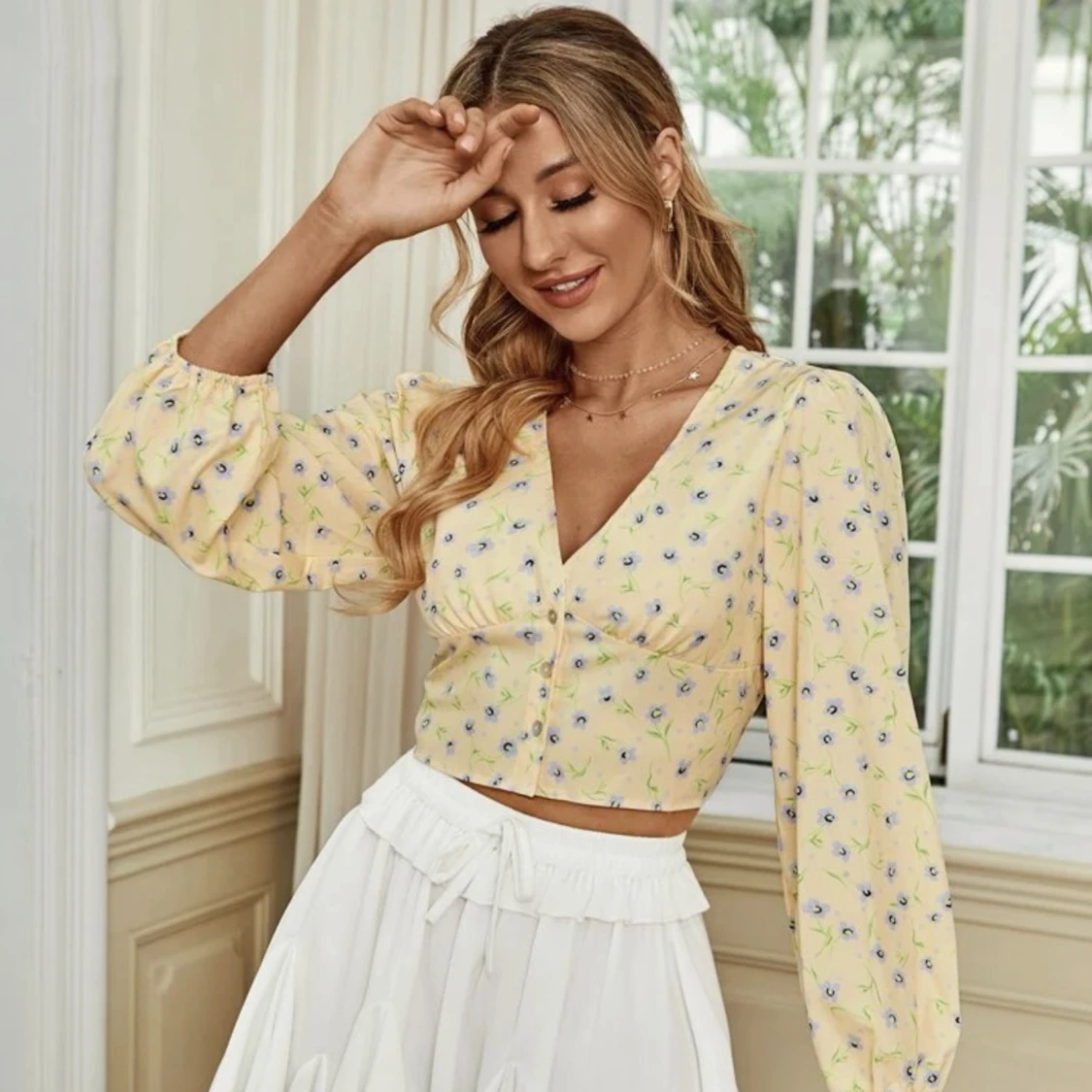 supergullig blus med blommigt mönster 💛💛 Endast använd 1 gång förra sommaren!