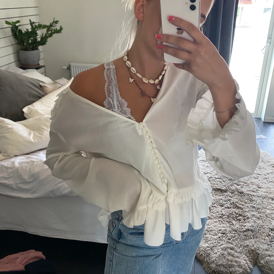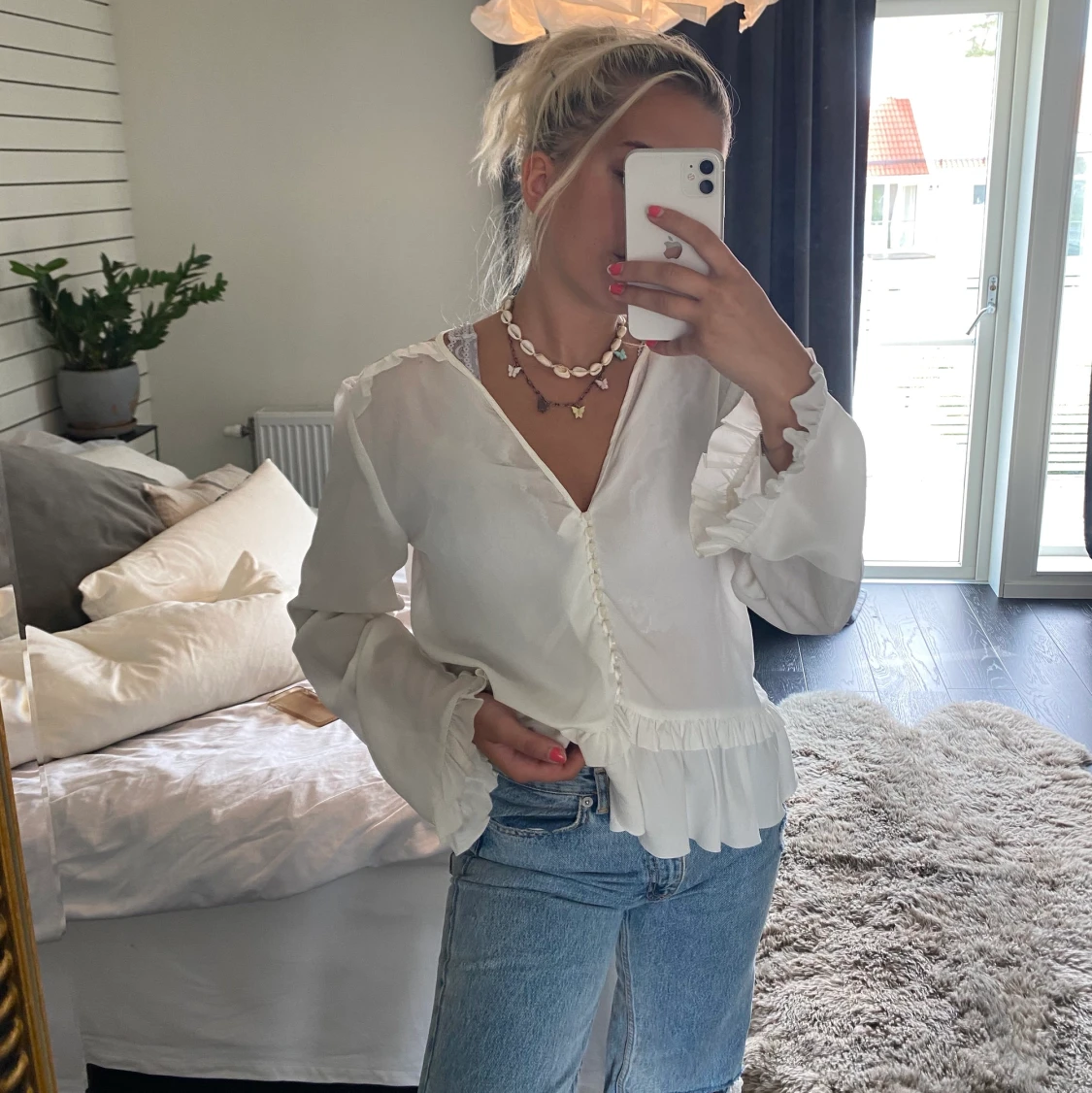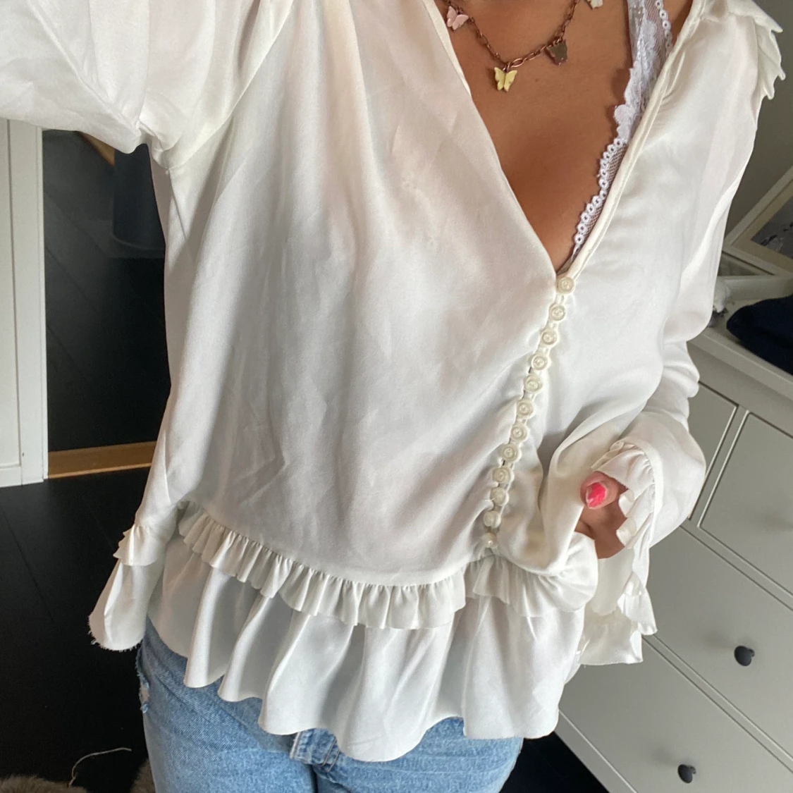 Jättefin blus som är gräddvit. Kommer inte till användning tyvärr då den är lite för stor för mig. Priset går att diskuteras!!