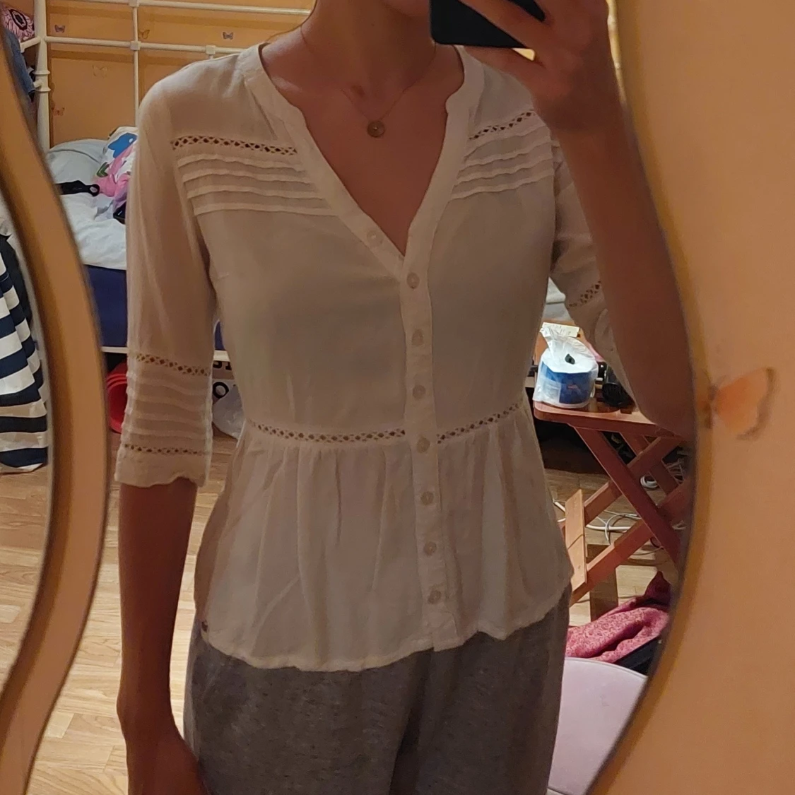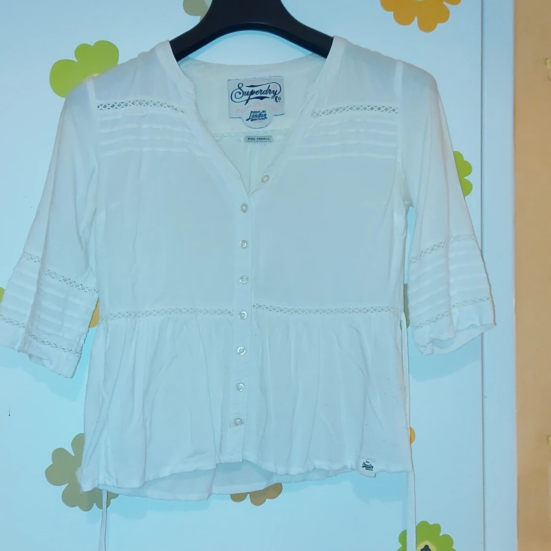 White blouse from SuperDry. Good condition. Adjustable strings on the back.