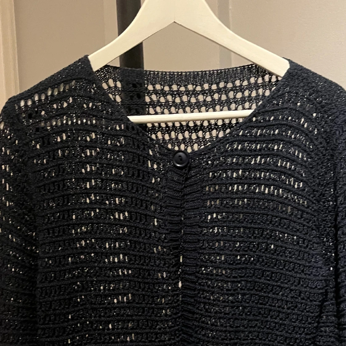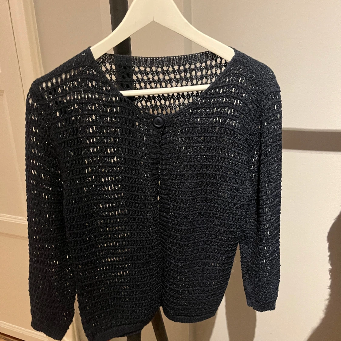 jätte fin mörkblå trekvartsärmad blus med en knapp längst upp, från italien så inget speciellt märke 🥰
