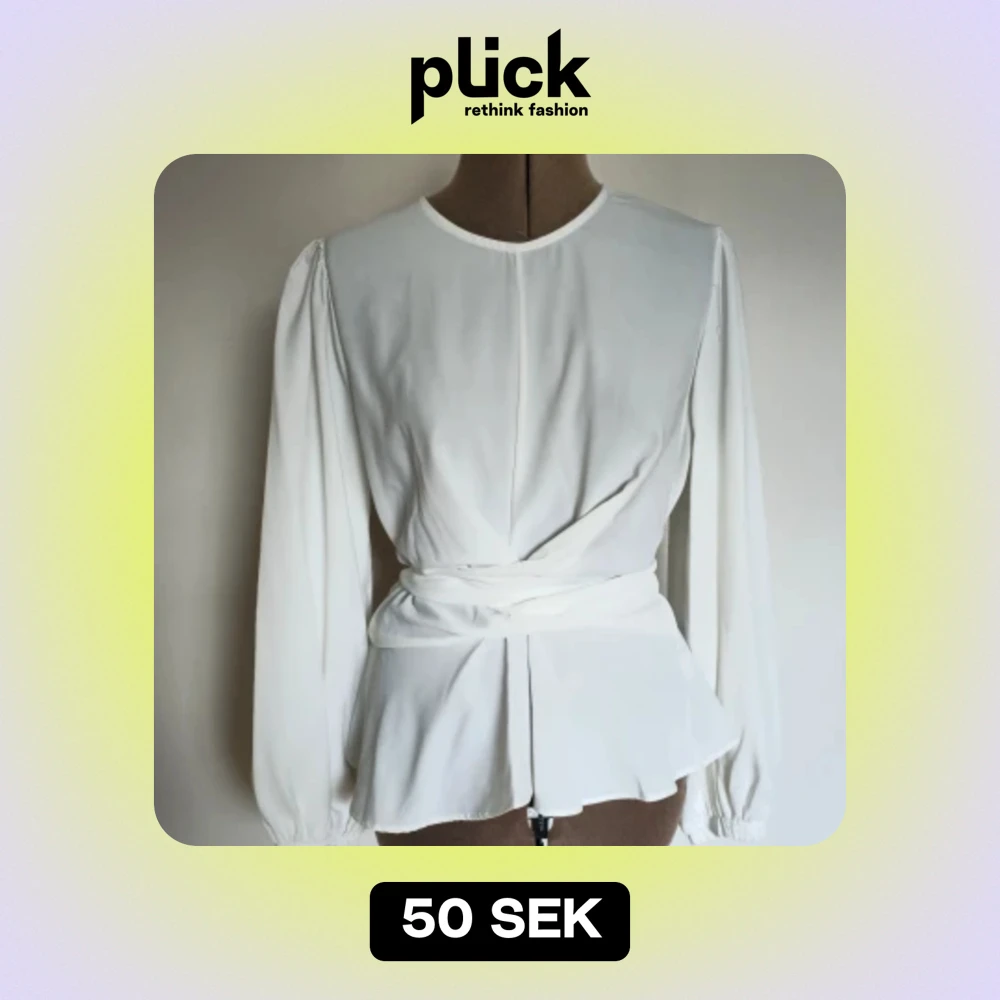 Oanvänd vit blus med knytdetalj som går att ha bakåt eller framåt. Passar S/liten M