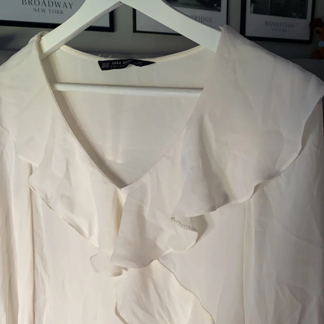Jättegullig vit blus som köptes secondhand, märket är Zara, i fint skick, använts fåtal gånger, pris kan diskuteras🤍