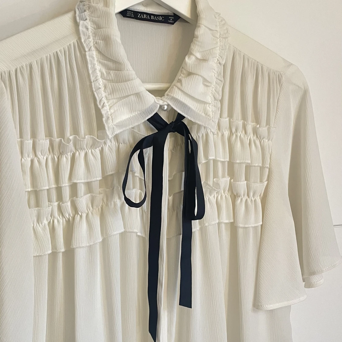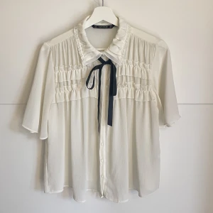Super fin blus från Zara, som inte går att få tag på längre. Den är endast lite genomskinlig vid ryggen och inte på framsidan, så den passar både för fest och vardag. Storlek M men sitter fint på mig som har S, skulle säga att den passar allt från xs-m💓