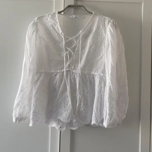Säljer denna blusen från zara med broderier💕Som ny, inga defekter eller slitningar