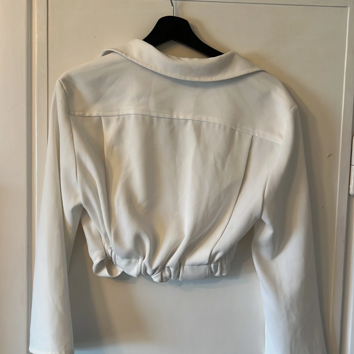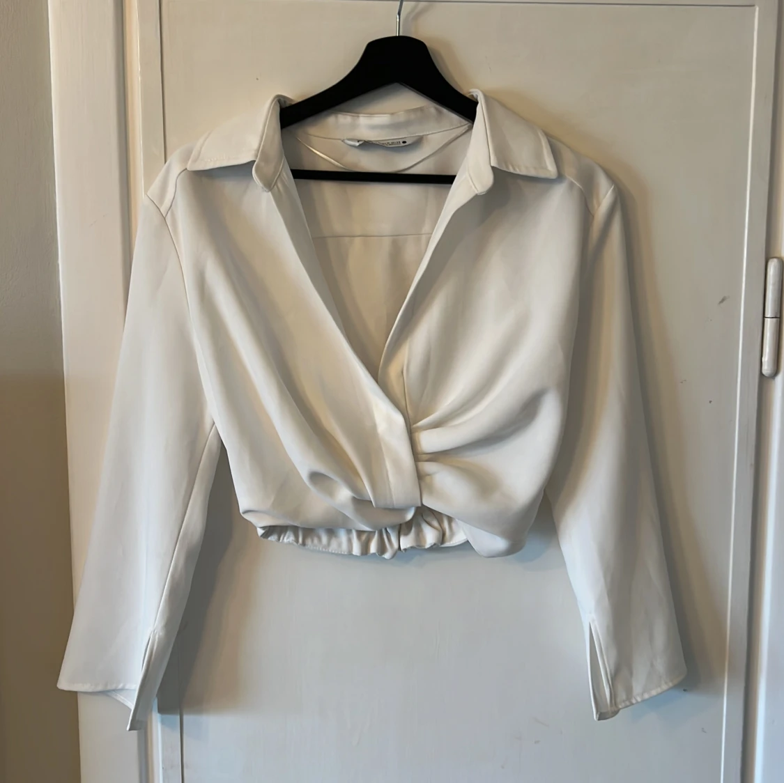 Vit skjortblus från Zara i storlek M. Blusen är croppad och har en dragkedja på sidan. Har använt 1 gång men har tyvärr blivit för liten.