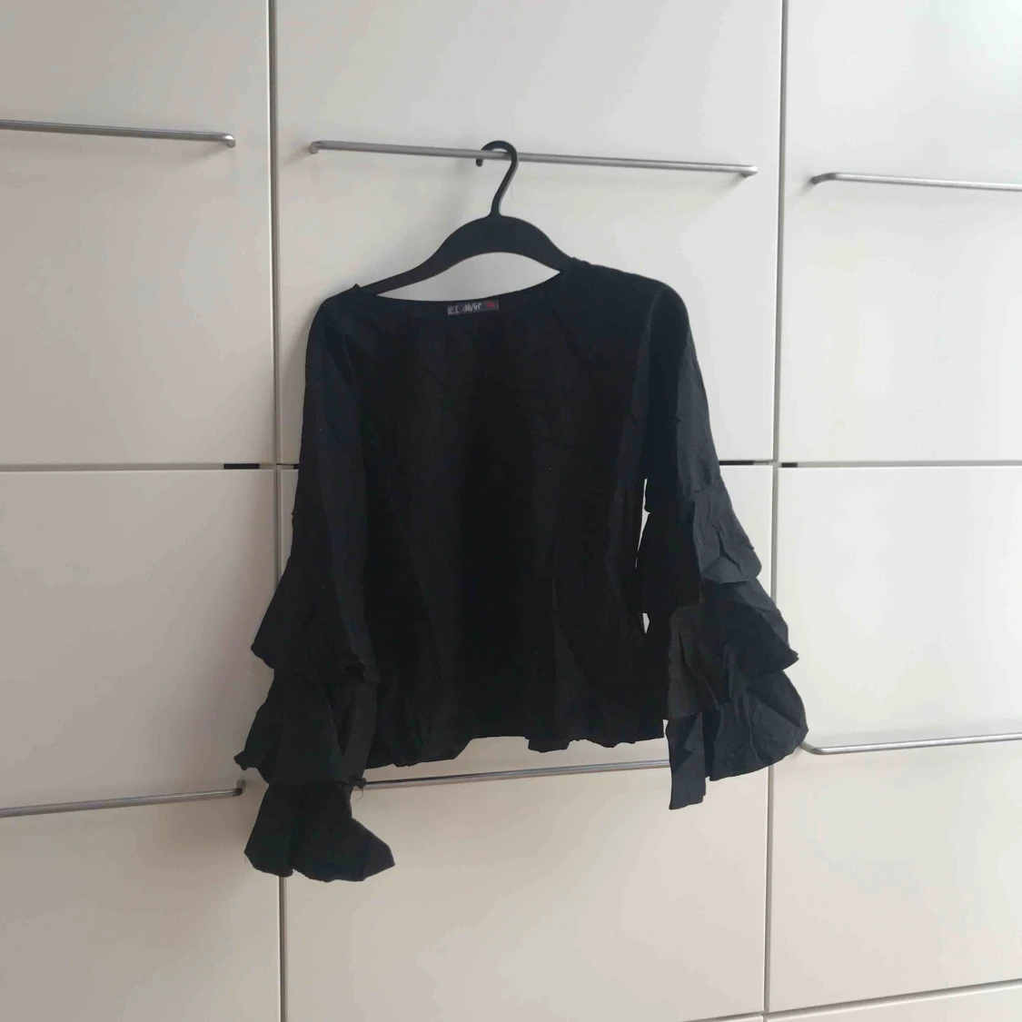 Volang topp hm  - Säljer denna superfina populära volangtoppen från H&M! Jättebra skick, då den bara är använd en gång💓