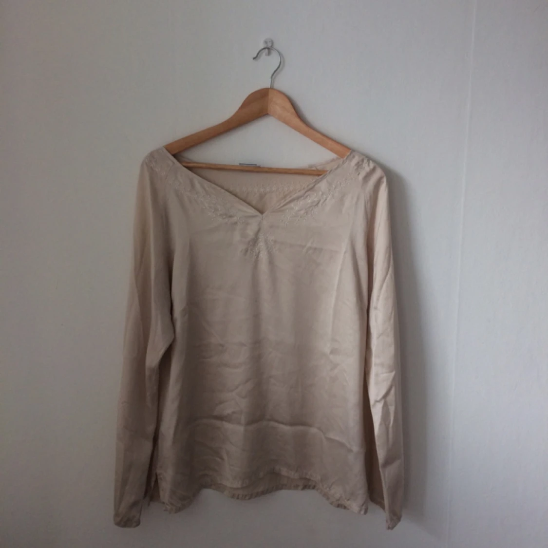 Snygg blus från Gina - Jättesöt blus!❣️Enda lilla defekten är att jag använt säkerhetsnål vid urigningen så det är en liten defekt från det men inget stort🥰Pris går att diskutera!