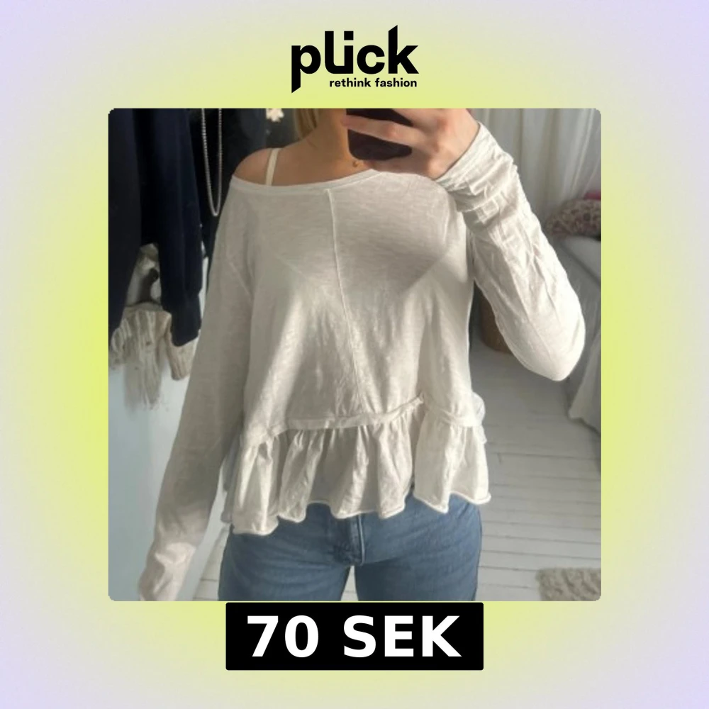 Supersöt topp med volanger längst ner, från Bondelid. Storlek L men jag ganska liten i storlek. Jag är 159, bär i vanligtvis xs/s.