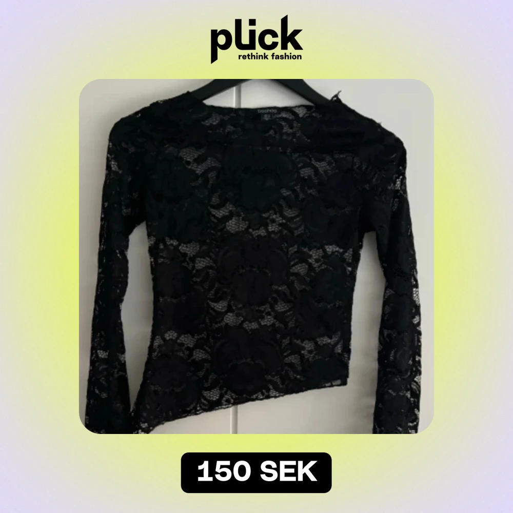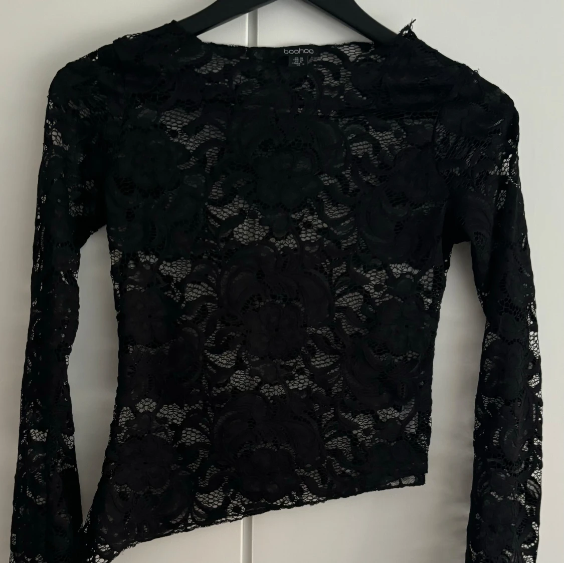 En svart spetströja som är lite sne skuren ner till. Tröjan är aldrig använd