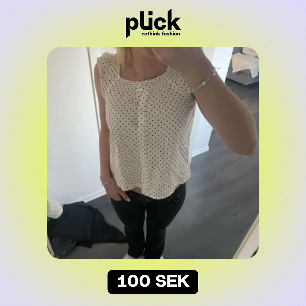 Jättesöt prick blus med bolaget vid ärmarna! Plagget är i barnstorlek men skulle säga att de passar en xs-s