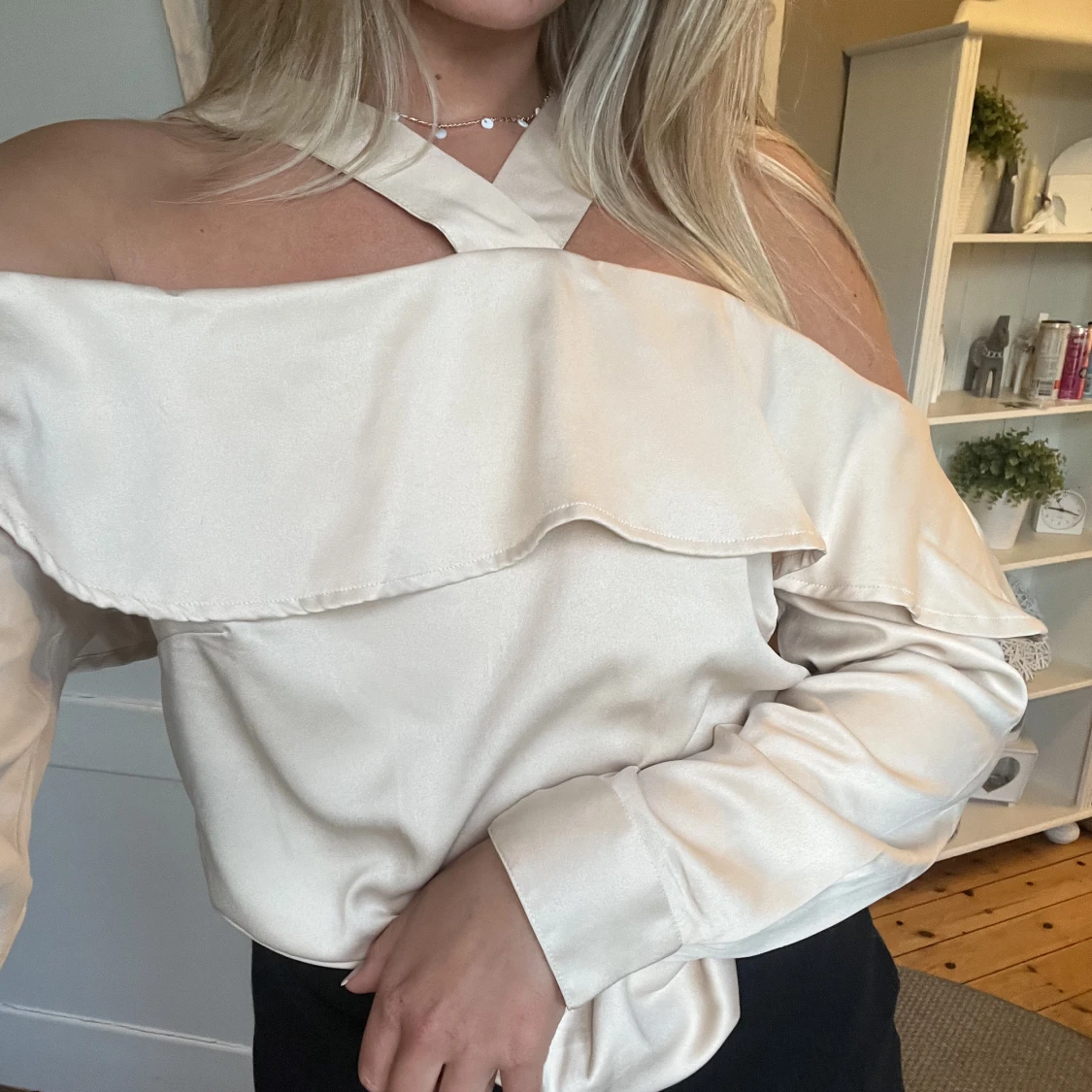 Satin blus från Moa Mattssons kollektion med bubbleroom, storlek s