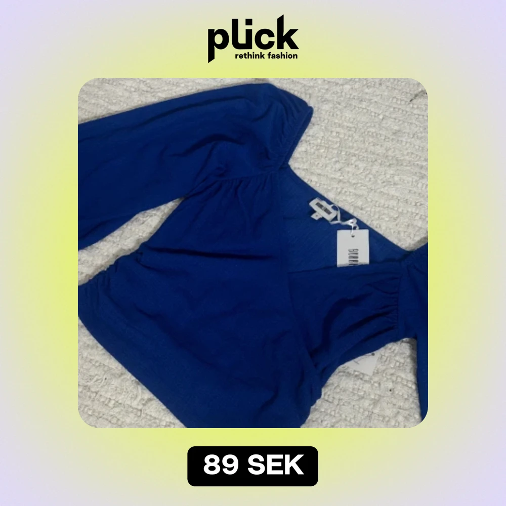 Denna blåa topp säljs, oanvänd, med prislapp. Lite fina detaljer, ballongärmar 💙🦋
