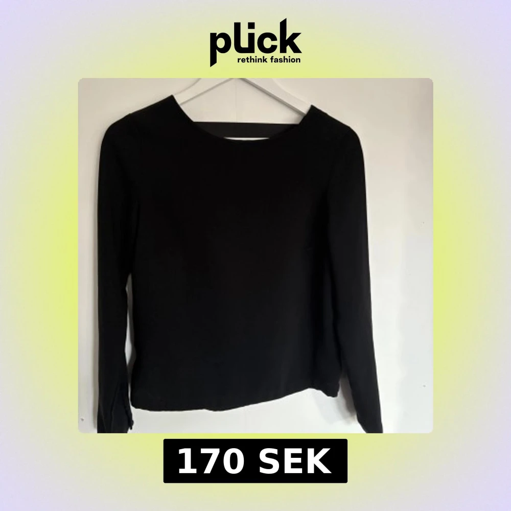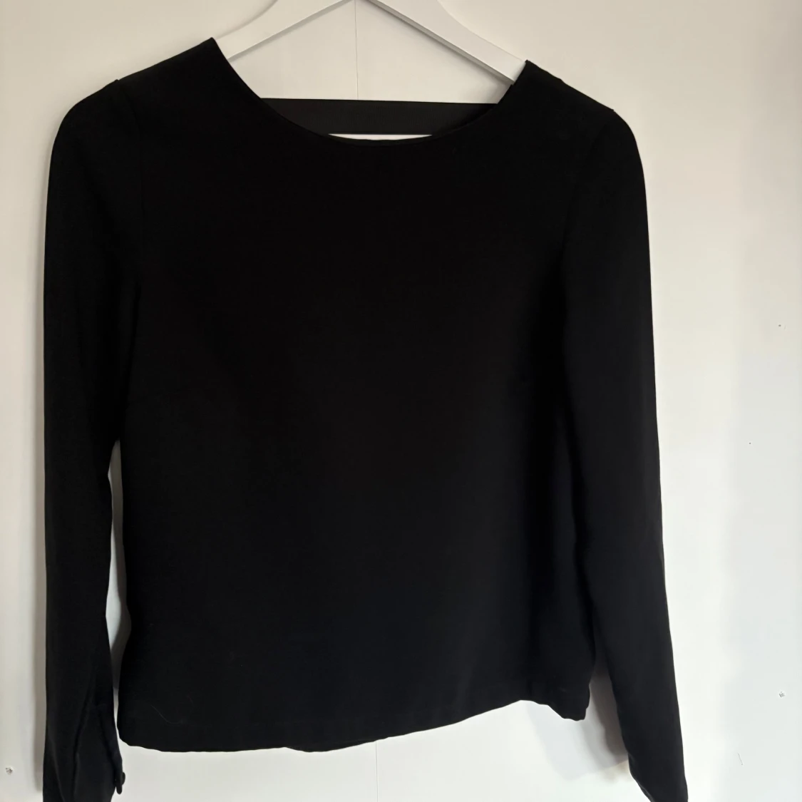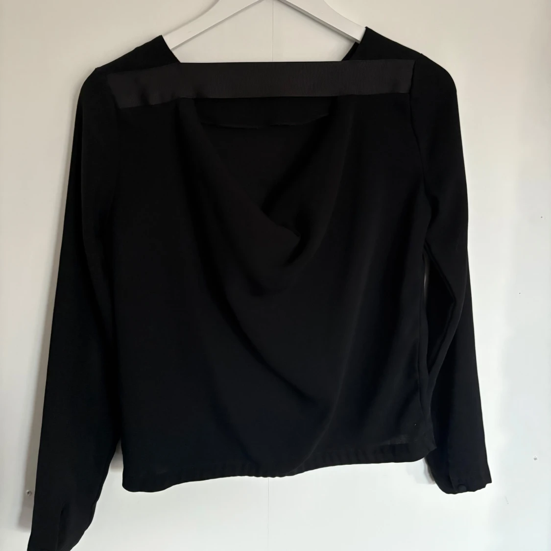 Snygg svart långärmad blus med en elegant öppen rygg. Perfekt för en stilren look. Passar bra till både jeans och kjol.
