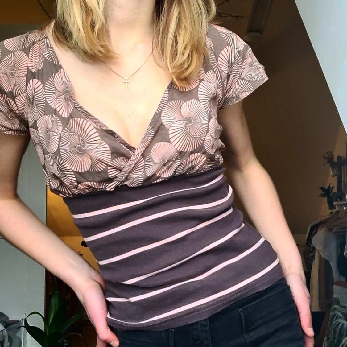 Brun och rosa blus. Något stor för mig som vanligtvis är 34/36. Frakt tillkommer på 45kr.