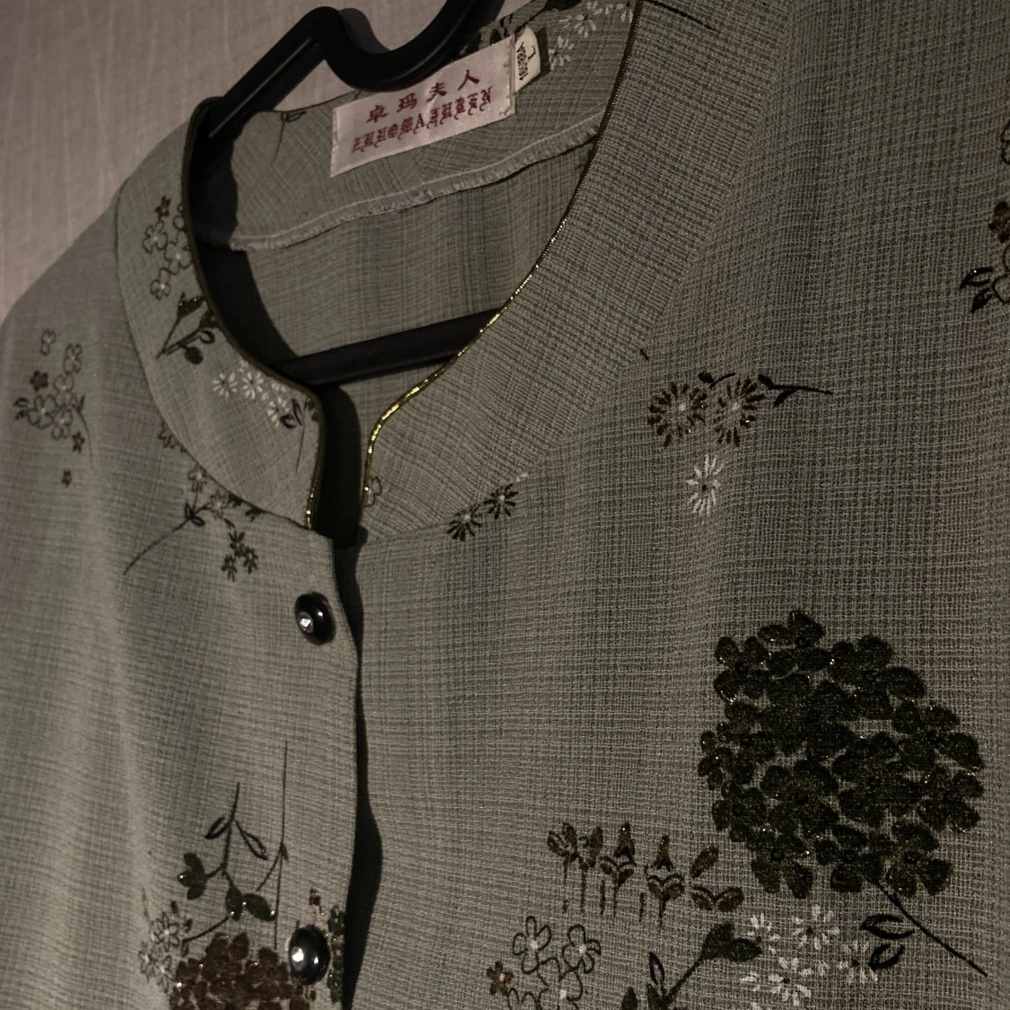 Jättesöt unik skjorta/blus 70% hampa 30% bomull, med skimrande detaljer och knappar. Den är i nyskick utöver att jag har klippt ur axelvaddar som tidigare fanns (se sista bilden). Hör av dig så skickar jag fler bilder💗