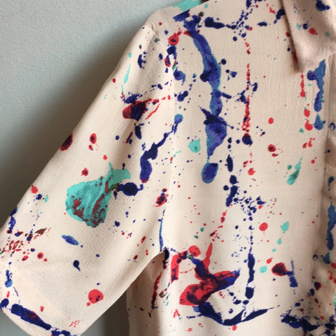 Snygg blus i crepekvalitet. Längre bak, rak i formen.