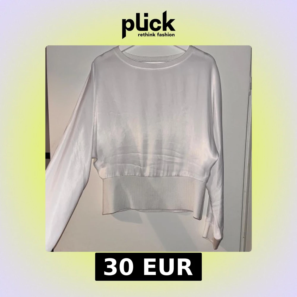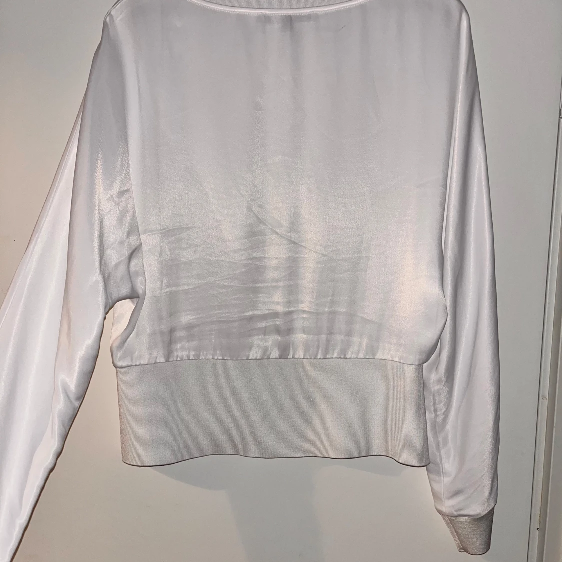 Säljer en stilren vit långärmad tröja i satin från Adolfo Dominguez. Tröjan har bred ribbad mudd nedtill och vid ärmslut, vilket ger en snygg passform. Perfekt för dig som gillar en enkel men elegant look. Går s-m!