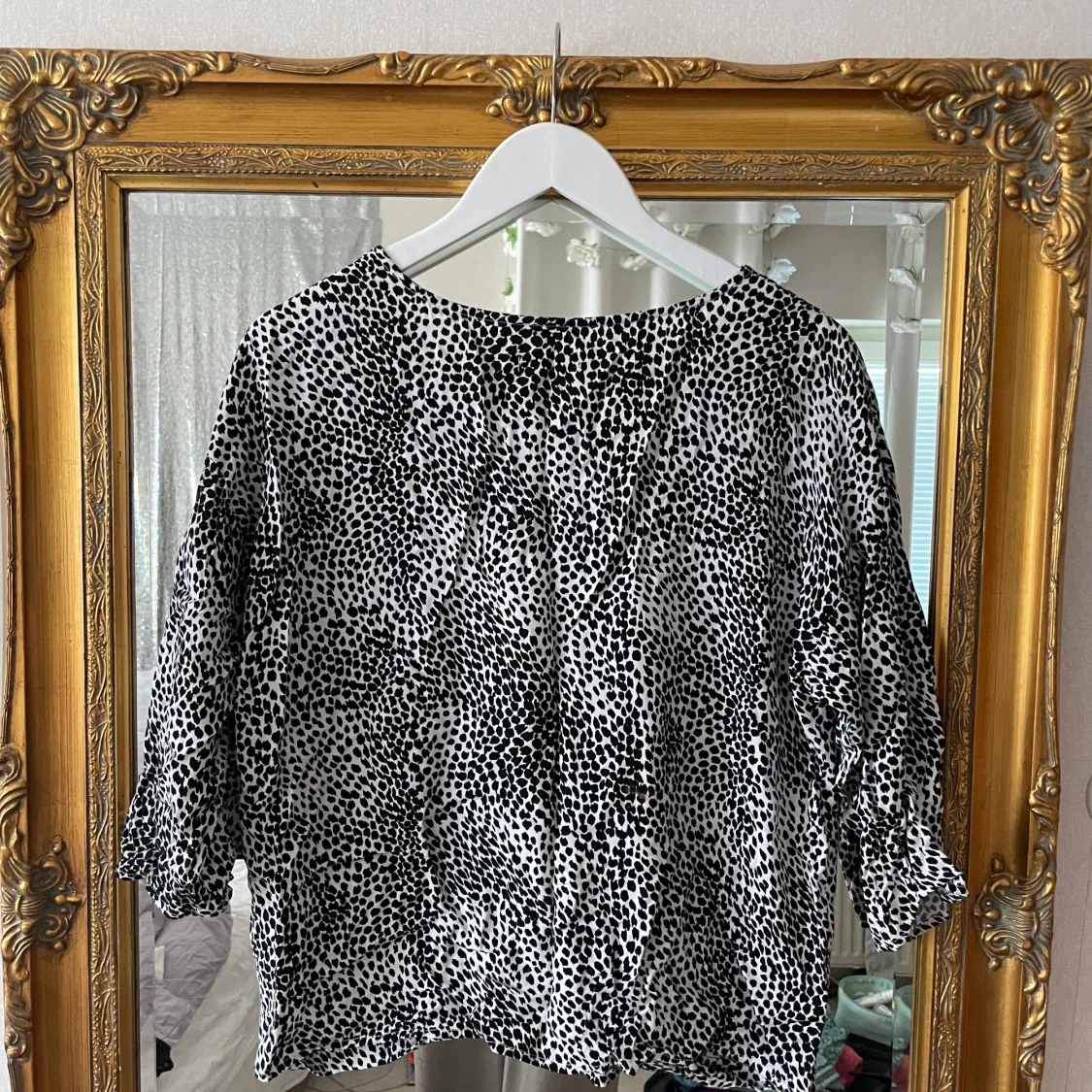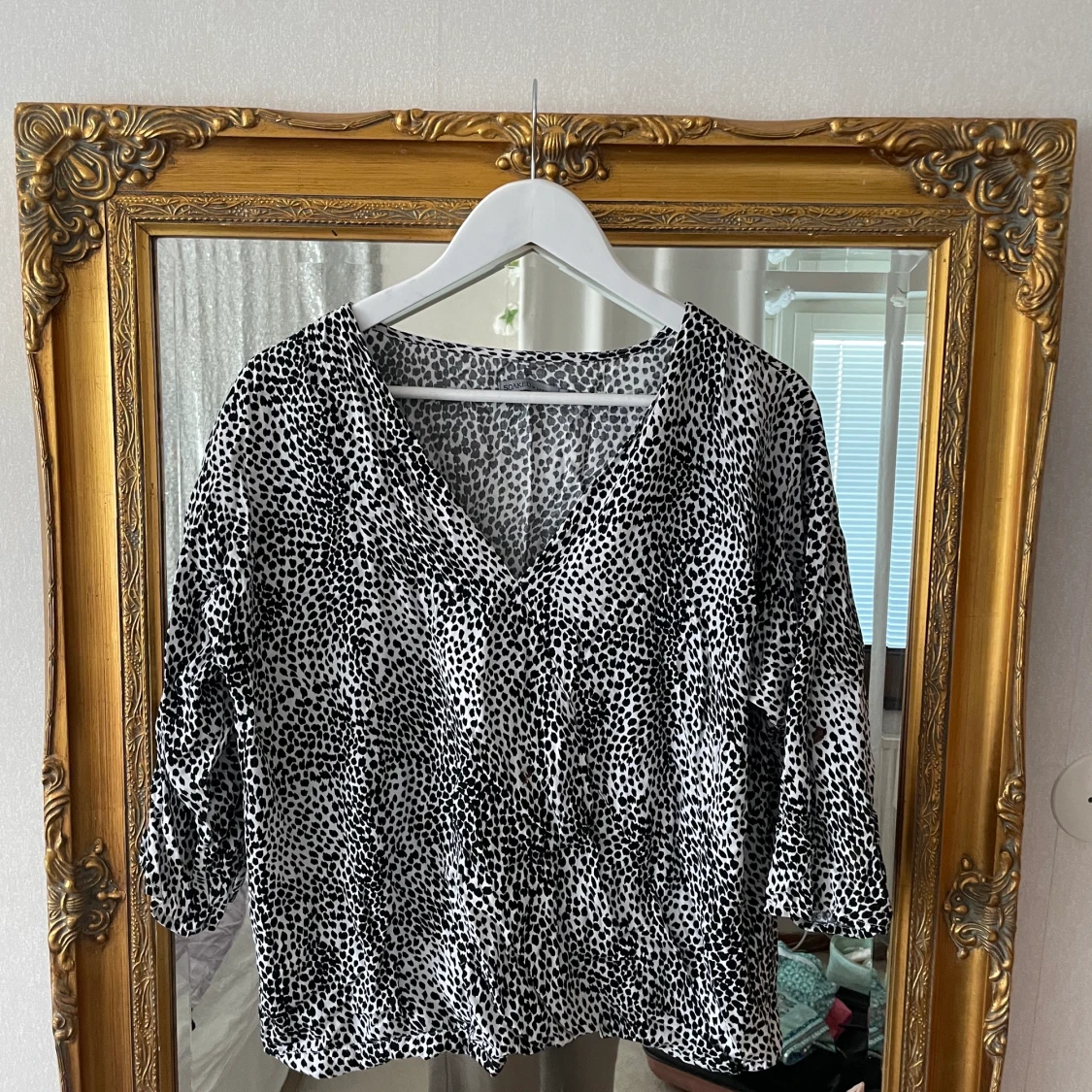 Mönstrad blus med V-ringning och trekvartsärm. Från Soaked In Luxury. Storlek M som passar S och L beroende på hur den ska sitta. Skriv för bilder på!