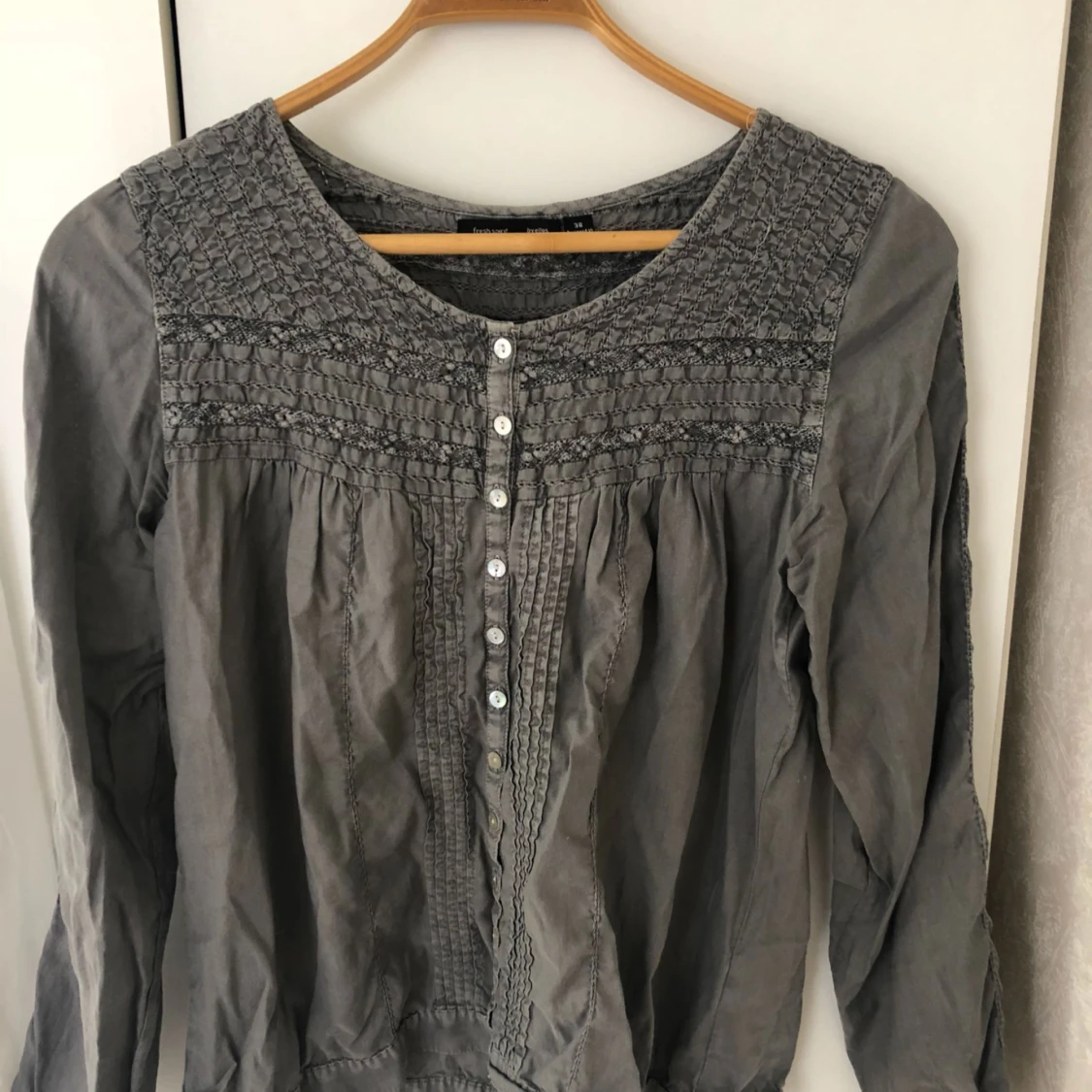 Grå/khakigrön blus från ellos i storlek 38. Använd men i fint skick. Frakt tillkommer.