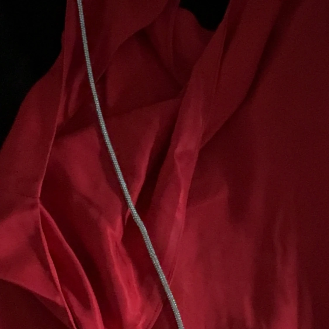 Säljer en snygg röd silkes blus med tunna axelband och enkel, stilren. Passar dig som gillar plagg med en festlig touch.