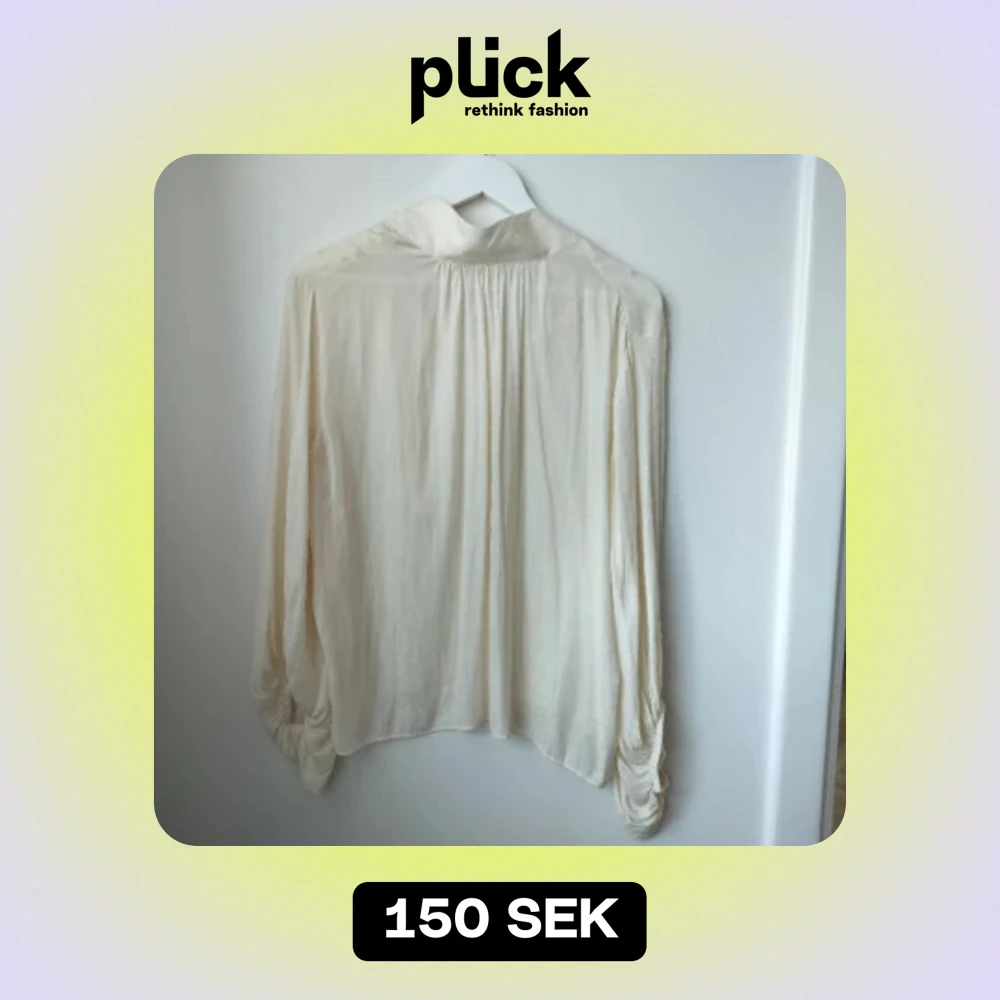 Superfin classy blus med hög krage och knyt baktill, ärmarna är voluminösa och flowy. Använd vid ett tillfälle! Från Wera/Åhlens, köpt för 400 eller 500 kr.