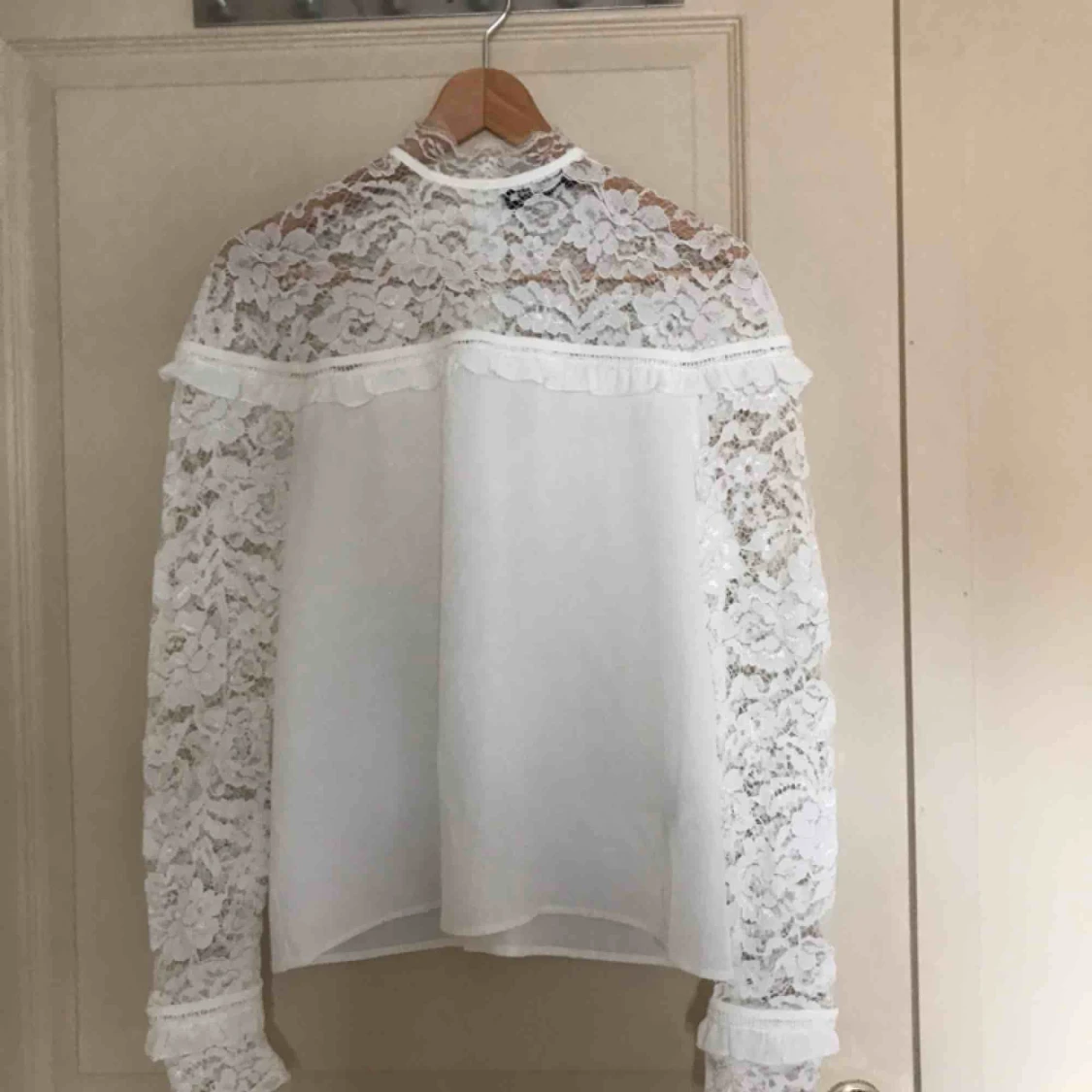 Oanvänd blus med fina spetsarmar och hals! Funkar perfekt till sommarfesten/middagen/studenten! Storlek S.