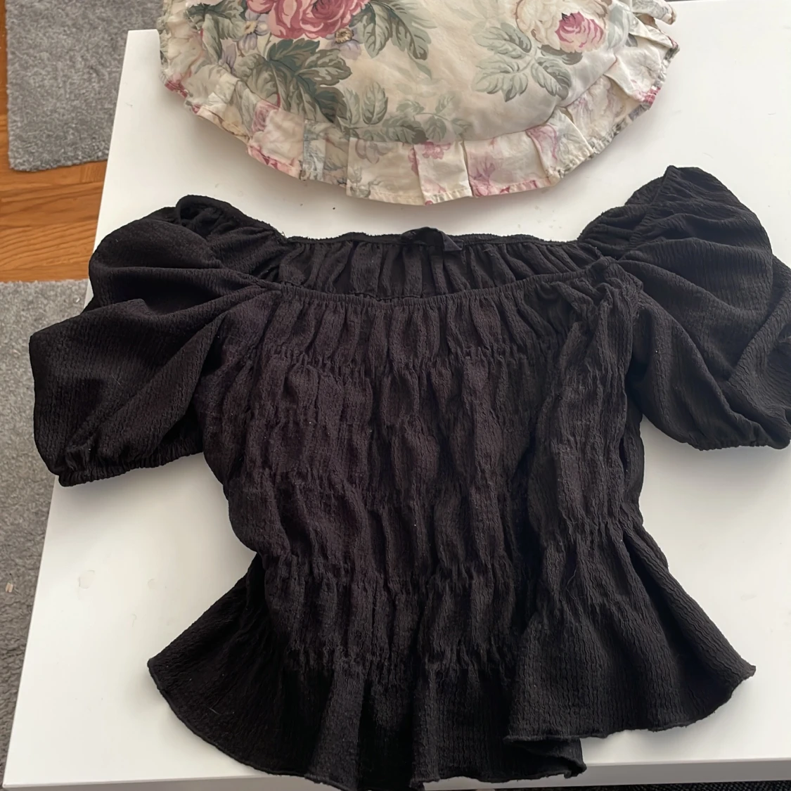 Svart kortärmad blus från even&odd! Storleken står inte, uppskattar att det är xs ❤️