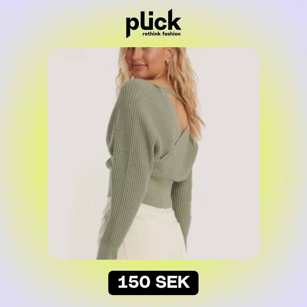 En gullig olivfärgad ribbad tröja med öppenrygg från NA-KD. Använd ett fåtal gånger. Storlek S.