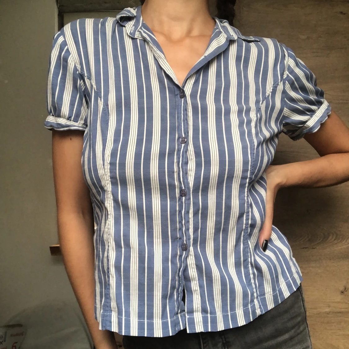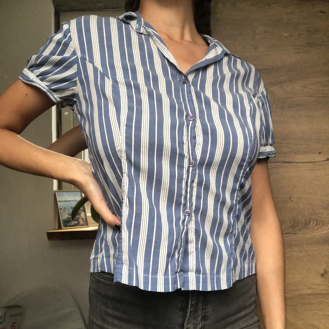 Blåvitranding blus från GANT, 70-talsinspirerad. Lätt använd, väldigt gott skick