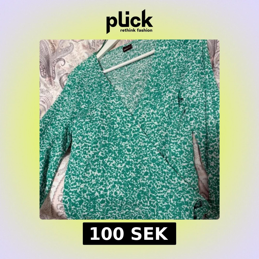 Snygg grön omlott topp från Gina Tricot med ett unikt mönster i vitt. Toppen har långa ärmar och en v-ringad design som ger en elegant look. Perfekt för att sticka ut med stil!