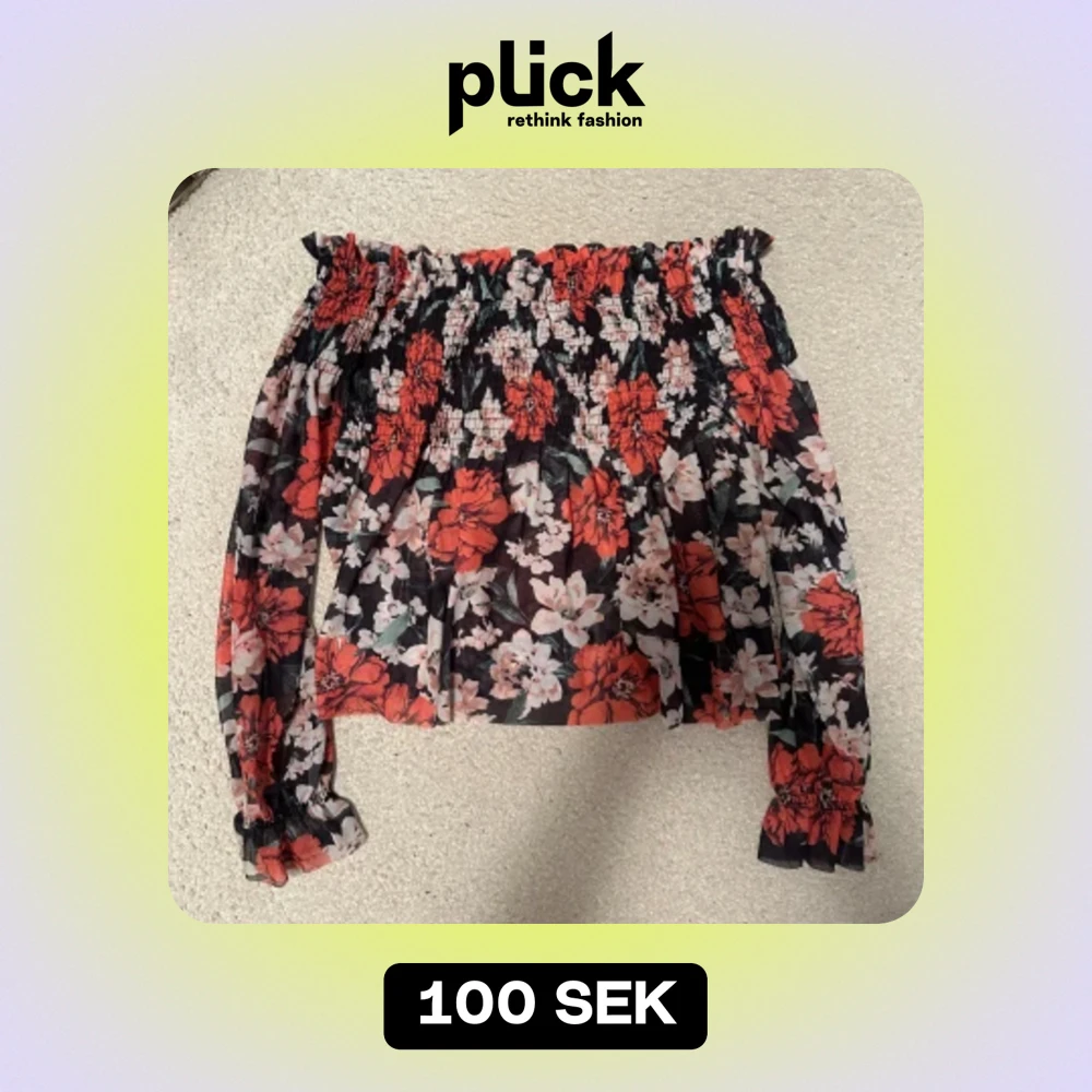 Blommig off-shoulder topp i mesh. Storlek XS. Använt några gånger. I bra skick!