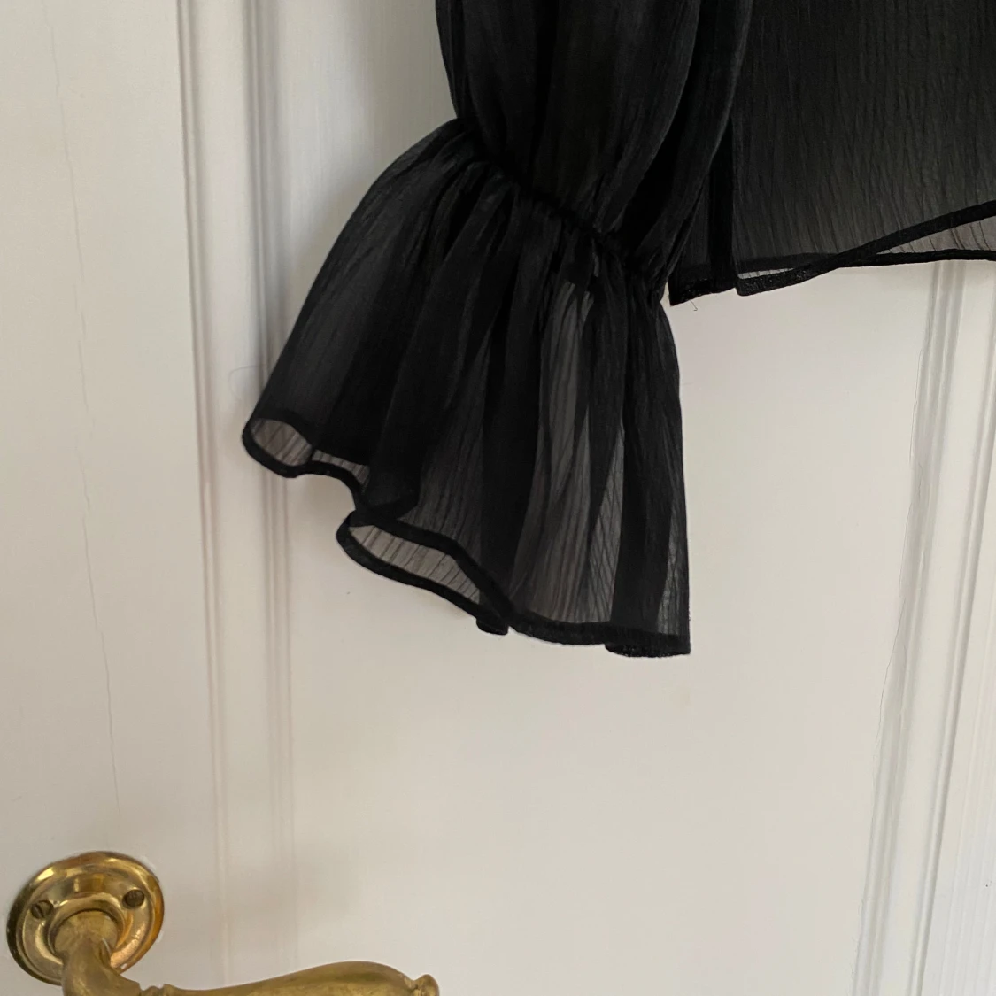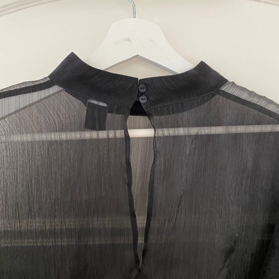 Såå fin svart, genomskinlig blus i glansigt material.