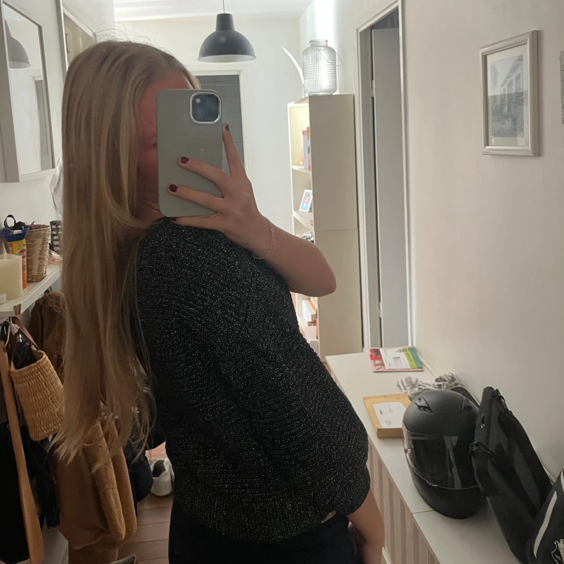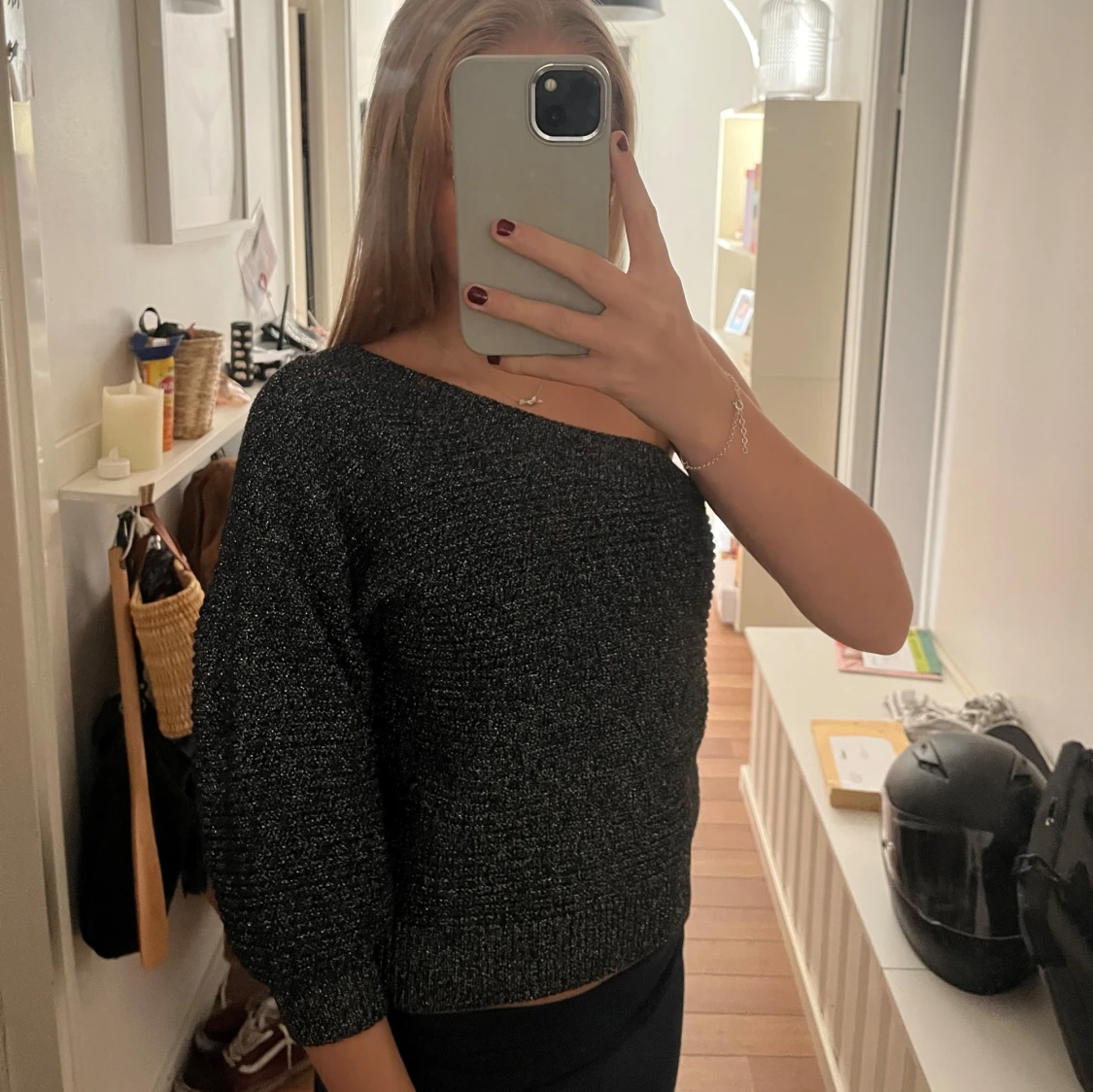 Glittrig fest topp från mango i storlek m men skulle säga att den är s/m.