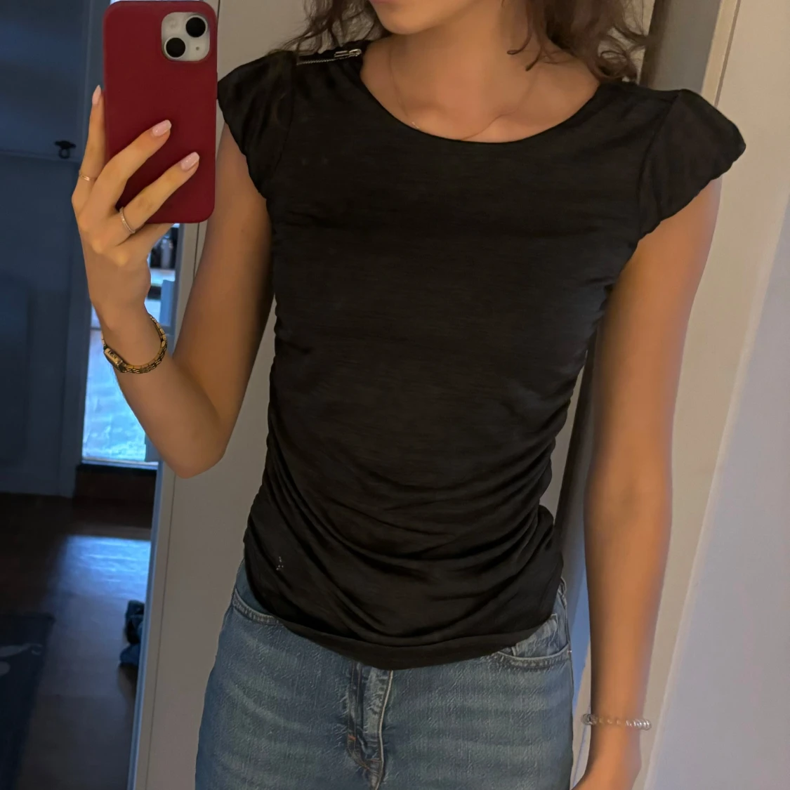 Snygg guess topp. endast använd ett fåtal gånger. Några strass stenar har lossnat från loggan längst ner på tröjan annars som ny. Är i barnstorlek L men passar mig som är storlek XS. Kommer tyvärr inte till användning längre.