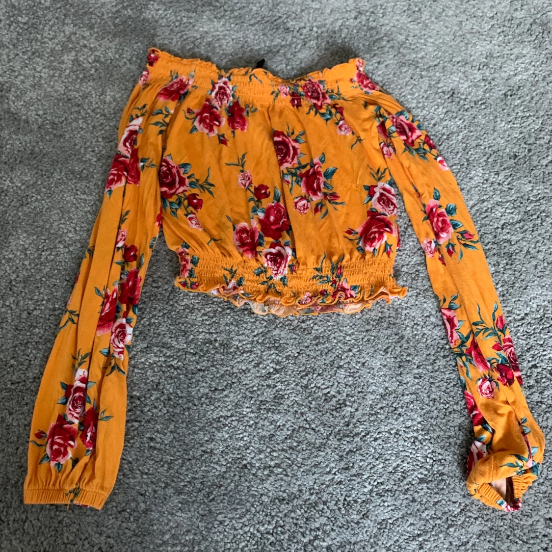 Denna top är verkligen jättesöt men tyvärr för liten för mig, den har ett jätteskönt material, den har ett pytte litet hål o ändan av armen men annars är den bra skick och den är använd 5 ggr🥰