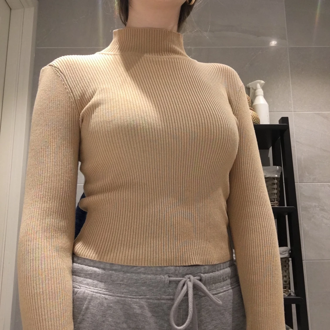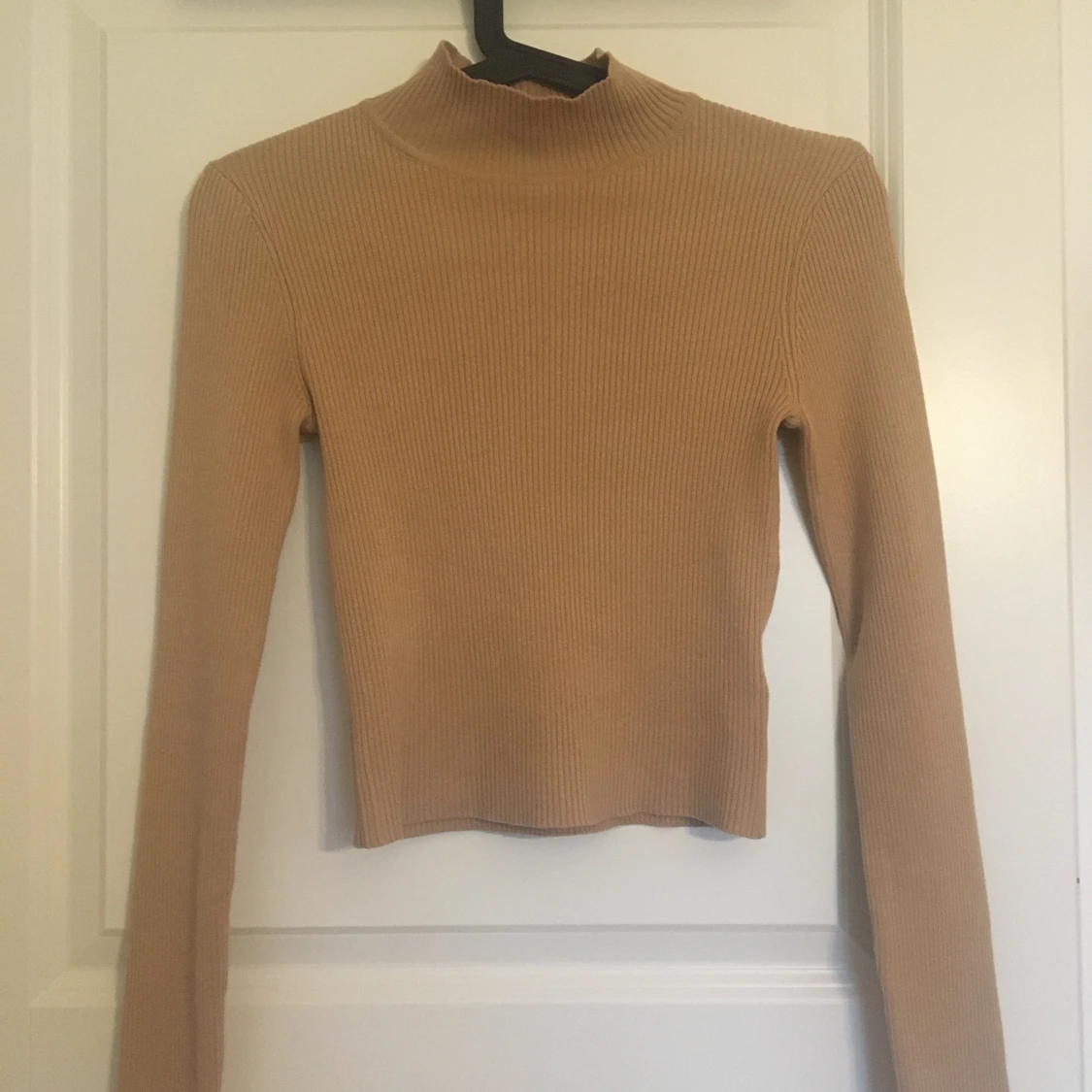 Detta är en fin beige, ribbad, långärmad tröja från H&M. Är i bra skick, inga fläckar eller fel på den. Har bara använt två gånger. Är i storlek XS men sitter på som S. Står ej för frakt!