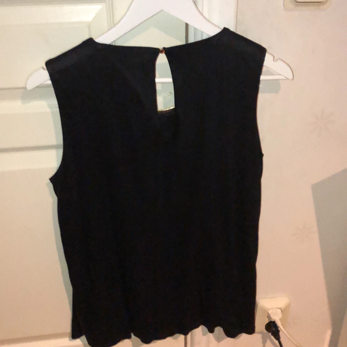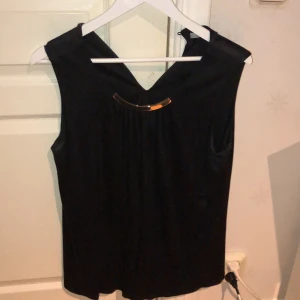 Mitt plagg Àr en kortÀrmad blus med en guldig detalj vid halsen, samt ett guldspÀnne i nacken, detta plagg sitter pösigt pÄ ett snyggt sÀtt.