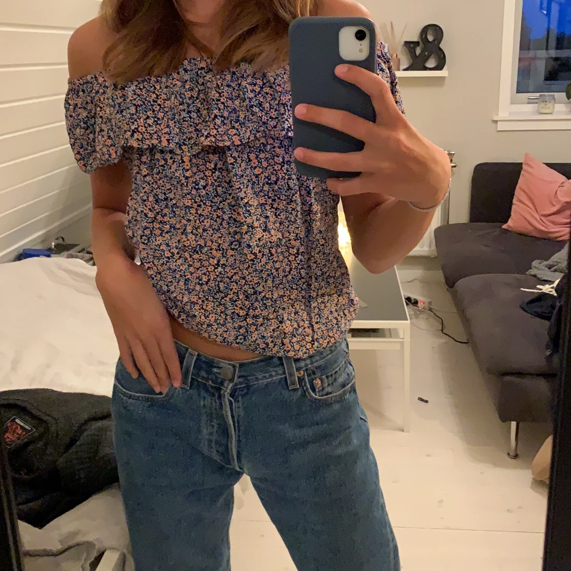 Jätte fin blommig blus som sitter of shoulder. Väldigt skönt och strechigt material!