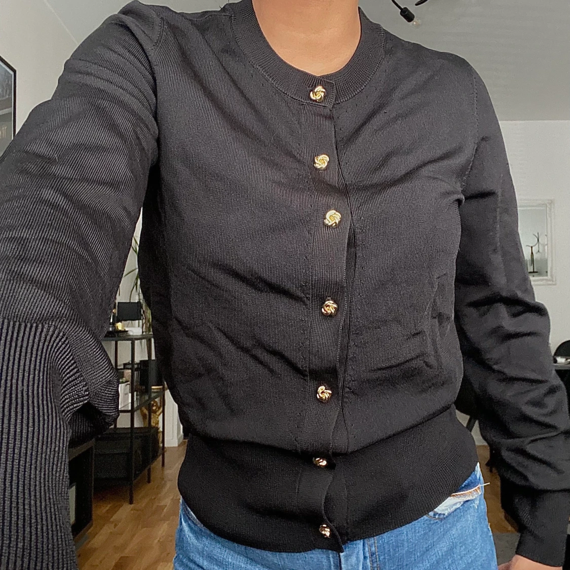 Väldig fin Stretchigt, skimrande material lång ärm knäppning framtill med guld knappar