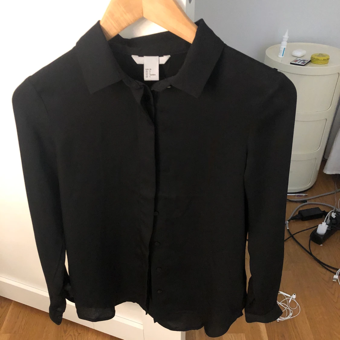Fin svart ganska tunn skjorta med svarta knappar framtill! Perfekt nu till våren och sommaren! Sitter jättefint på