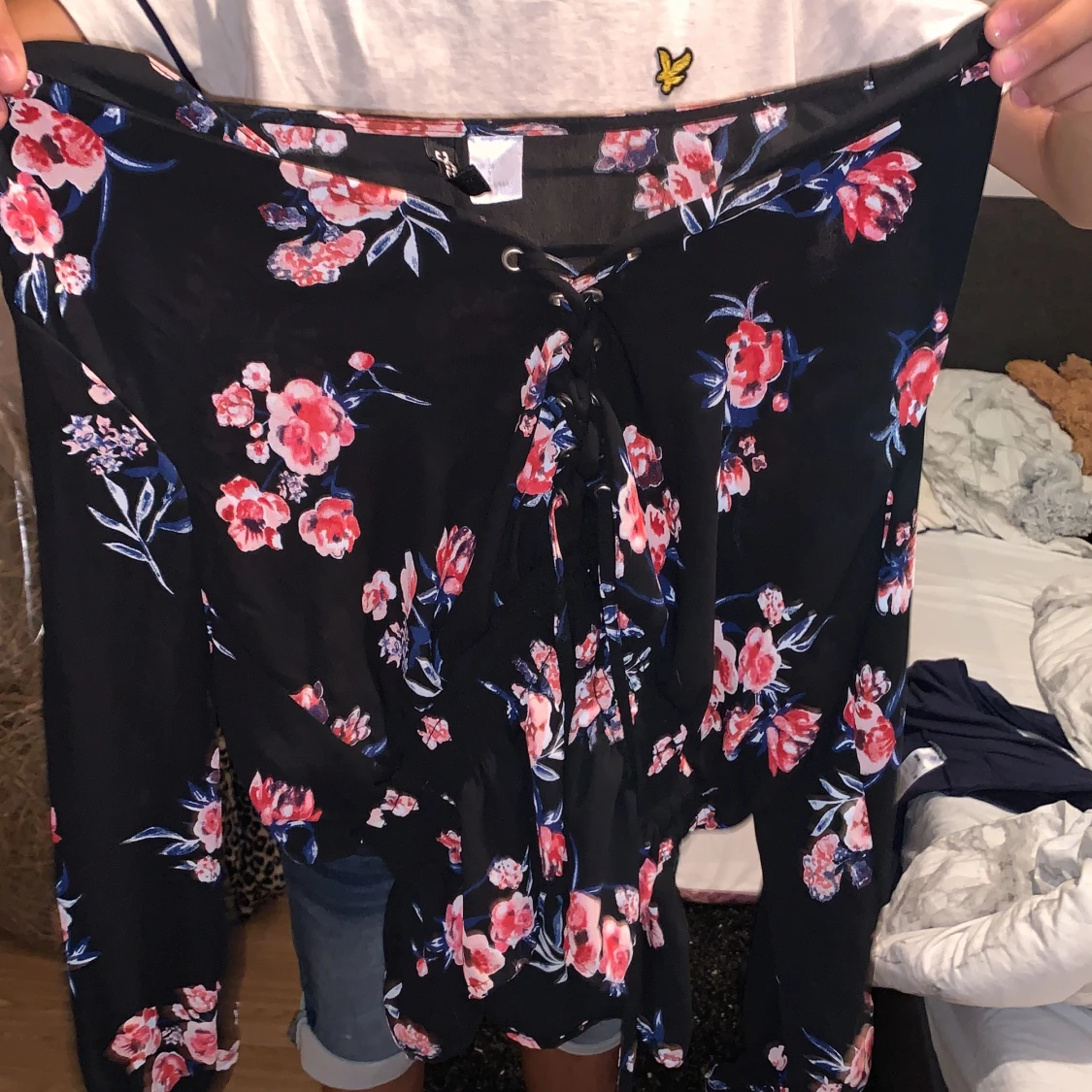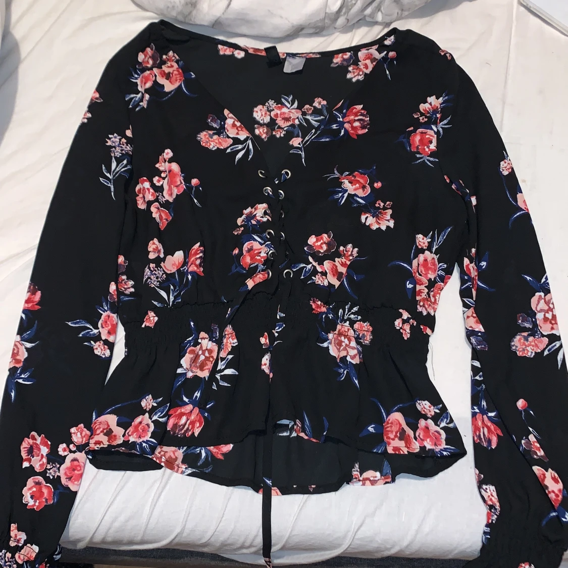 En vanlig svart blus med rosa blommor inte använt för inte tyckt det är min still i storlek Sx