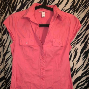 En rosa skjorta med korta ärmar. I väldigt gott skick. Ber om ursäkt att den är skrynklig.