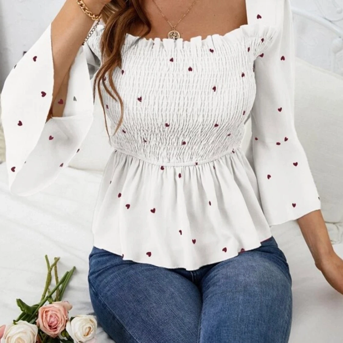 Super söt blus som jag precis fått hem men säljer då det inte riktigt är min stil! Super skön och väldigt bra kvalite! Skulle säga att storleken är M-L. Hör gärna av dig vid frågor och funderingar❤️