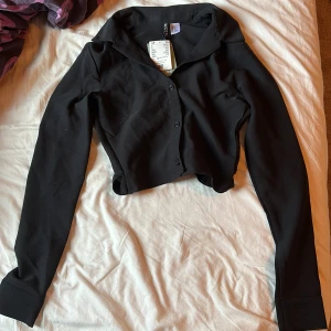 En svart blus från hm som man kan knyta i ryggen eller vid magen man bestämmer själv. I storlek 32