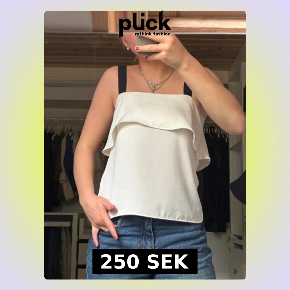 Säljer en vit linnetopp från H&M i storlek 32 och skulle säga att den passar XS/S. Toppen har svarta axelband och en snygg omlottvolang framtill som ger en cool och modern vibe. Materialet är mjukt och lätt, perfekt för varma dagar. Passar dig som gillar stilrena och enkla plagg med en twist. Nästan aldrig använd🩷