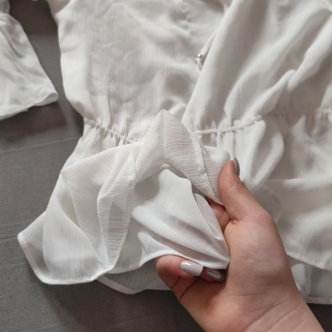 Den är i storlek s men den är stretchig och den har utsvängda armar. Jag rekomenderar att ni köper den ni kommer inte ångra er sen. Jag säljer den typ 100kr billigare än vad den egentligen kostar💞