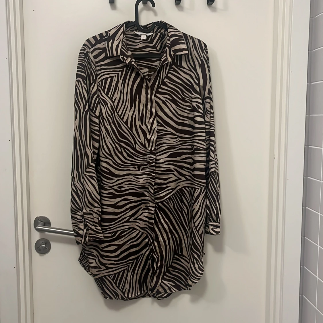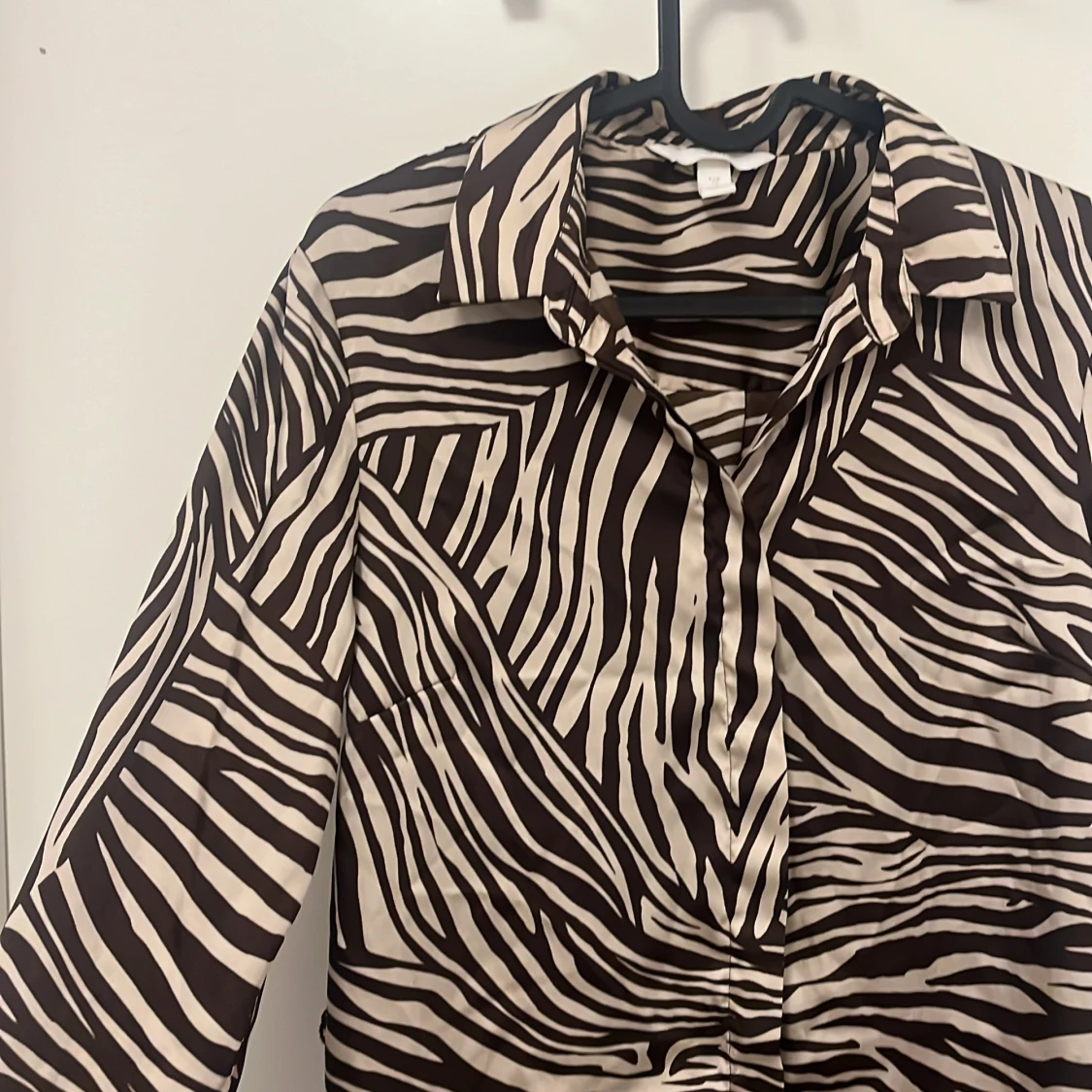 Mönstrad blus, brun/beige. Finns även band till midjan i samma mönster.